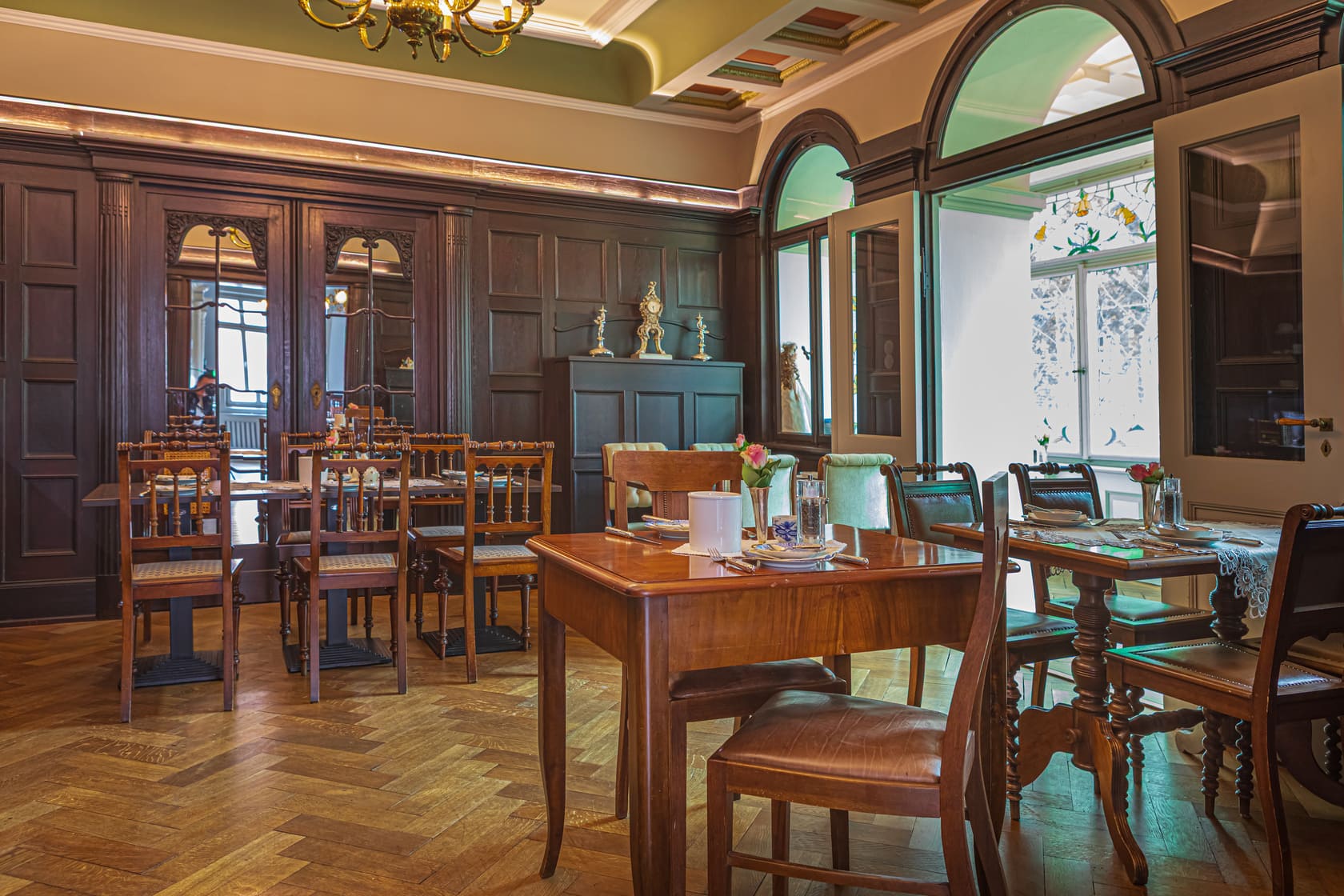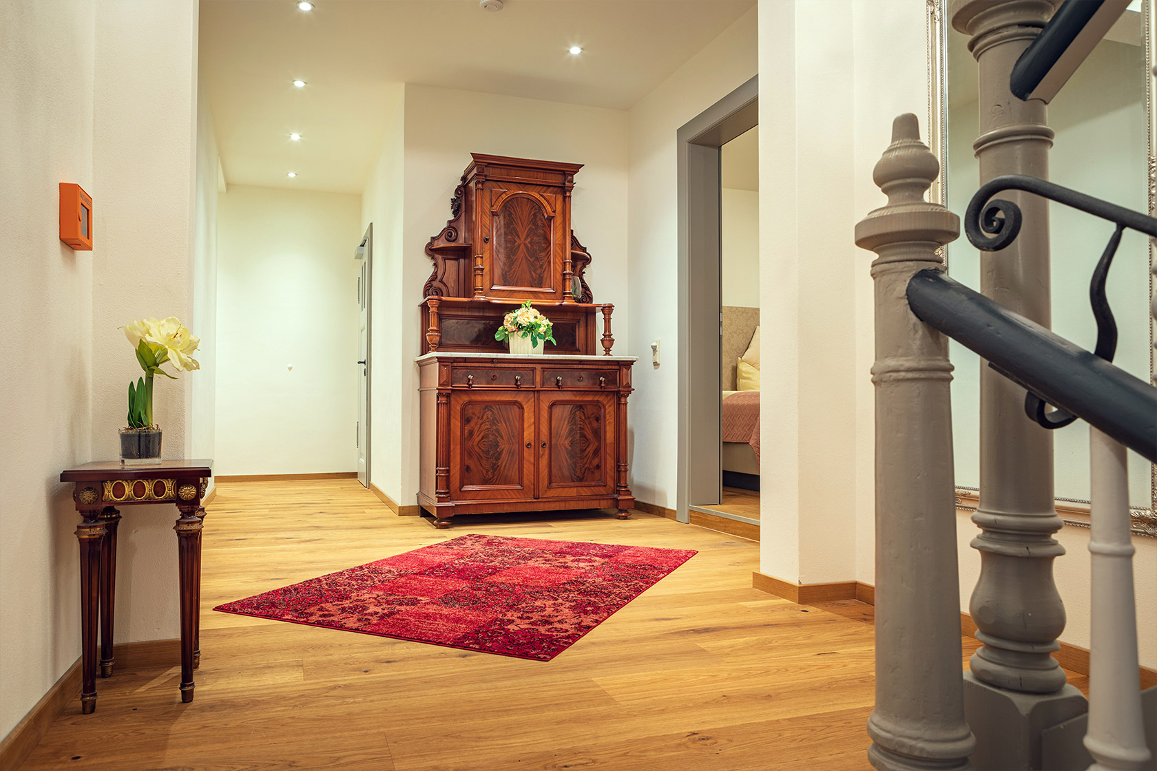 Über die Jahrzehnte wurde die Villa mehrfach erweitert und sorgfältig instand gesetzt – zuletzt umfassend restauriert und zu einem stilvollen Domizil für Gäste umgestaltet. Dabei blieb der historische Charakter erhalten: Das originale Treppenhaus mit feiner Holzvertäfelung, die Zimmertüren mit Ädikulaaufbau sowie die Gangfenster mit Altverglasung zeugen von der Handwerkskunst des 19. Jahrhunderts.